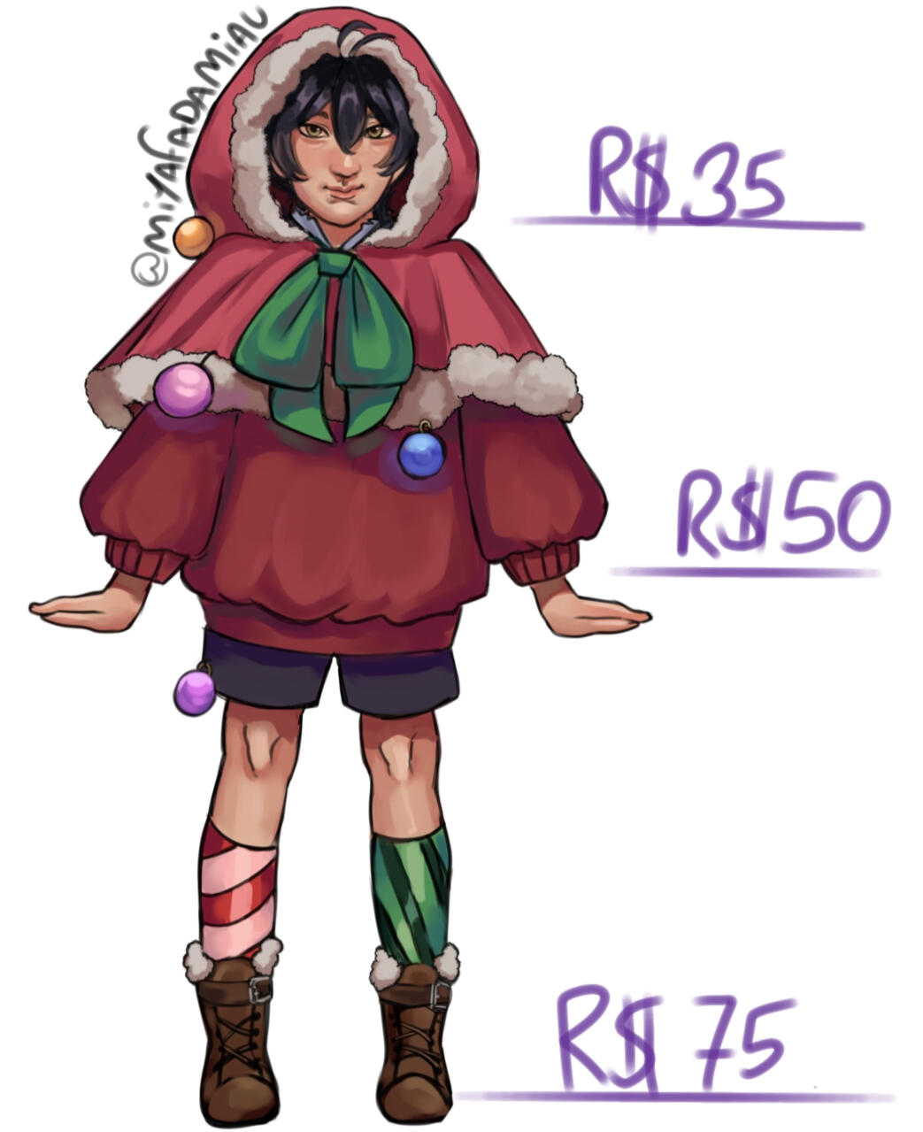 • O pagamento por 50/50!!• demoro cerca de 5 dias, no máximo 2 semana, mas avisarei caso demore!!• após o rascunho e cores apenas 2 mudanças serão permitidas, mais mudanças após isso será cobrado +R$10 cada pedido• irei aumentar o preço se a peça haver muitos detalhes!• peço que tenha paciência em explicar sua ideia, e também que me fale detalhes!!!